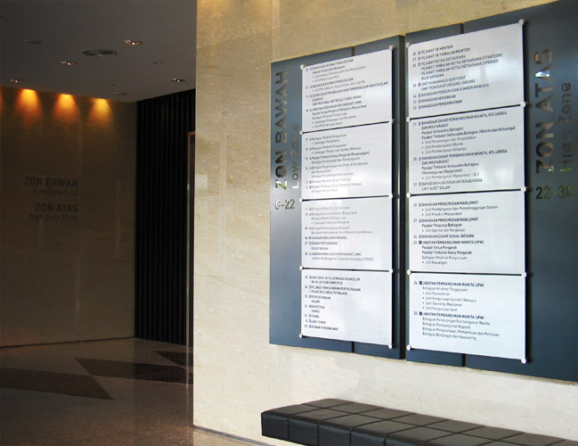Astute clients realise that a well-designed wayfinding & signage programme not only fulfils their communication function of informing, directing, and identifying but also serves to enhance the branding-power and value of their property.